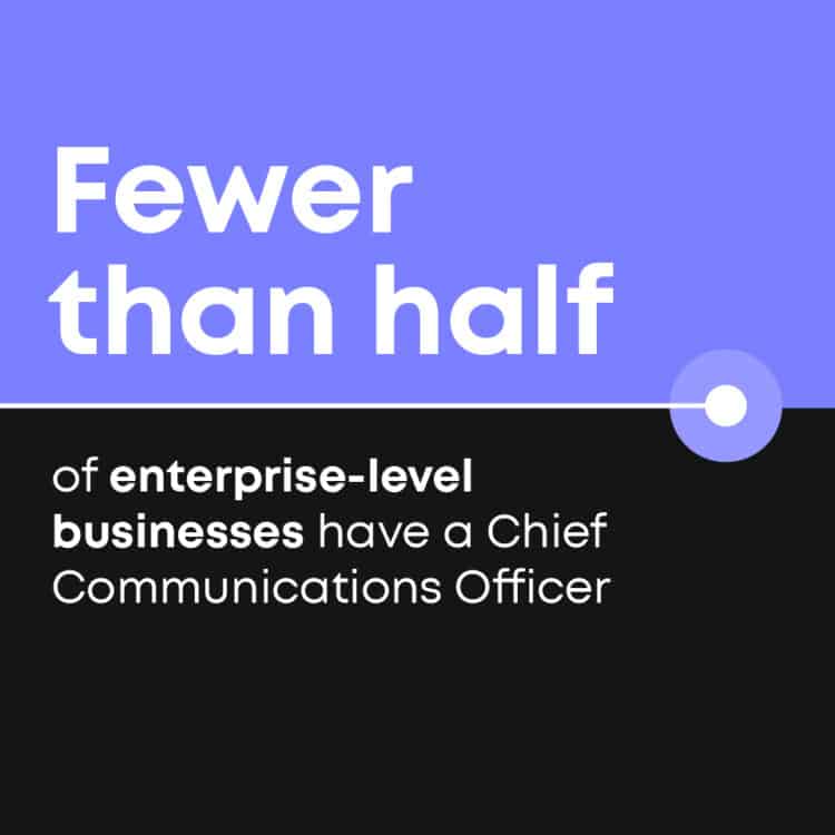 While marketing has cemented its presence on the c-suite, with around two-thirds of businesses in the Fortune 500 having a CMO, more often than not, comms typically reaches a ceiling at c-minus-one. Data is sketchy, but rough estimates suggest fewer than half of enterprise-level businesses have a Chief Communications Officer. Where comms lacks a seat at the table, reporting lines are fragmented, and comms teams will typically report into either marketing, corporate affairs, or even legal and HR, which can probably give a good indication of a business’s appetite for risk.